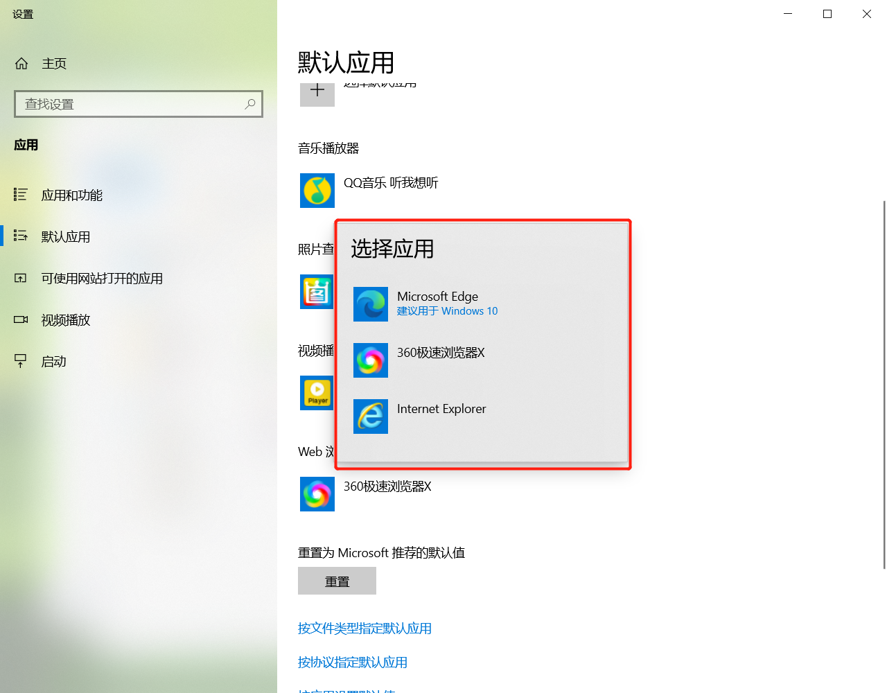 选择设置默认程序