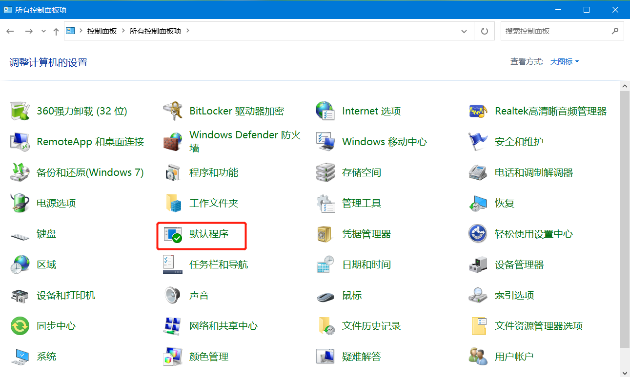 体验 Windows Feature Experience Pack 120.2212.3920.0首先,我们进入控制面板-默认程序中