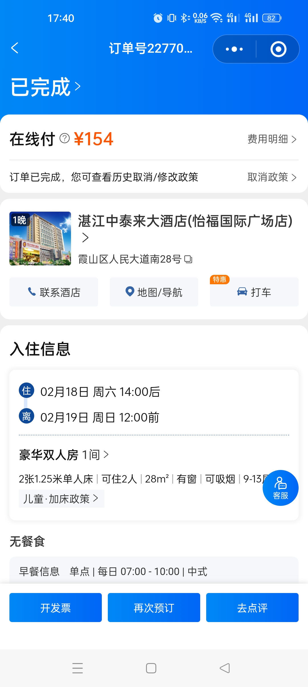 一晚上154元,条件还可以,湛江西到这里大概1个小时。