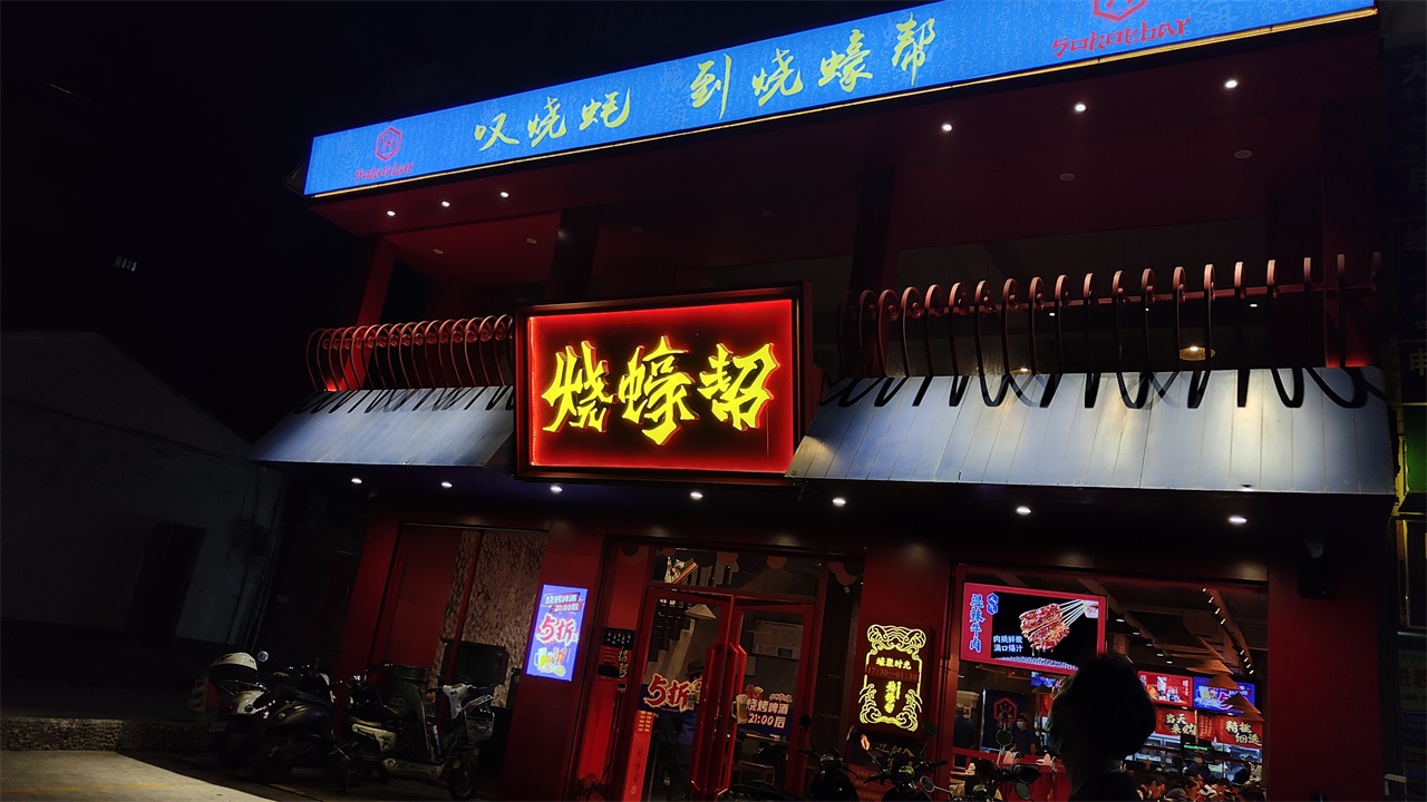 东西放好了,直接去 附近的烧蚝帮(工农店),走路就15分钟,非常近,这一路上已经感受到这个城市的热闹了。这个烧蚝帮装修蛮大气的,消费水平也还可以,我们2个大男人直接点的乘风破浪豪华4人餐