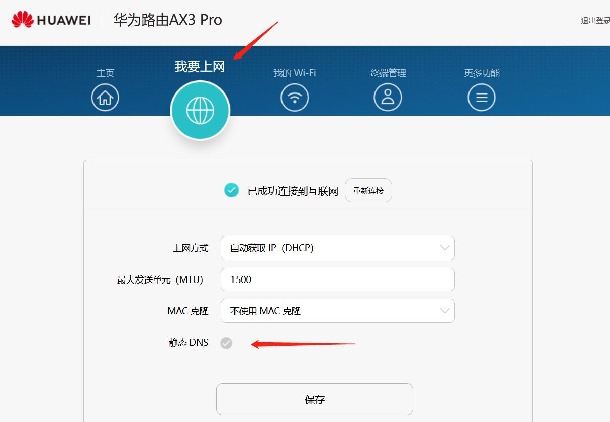 起因是博主换了个华为AX3 PRO路由器,光猫拨号,路由器选的是自动获取IP地址(DHCP),但是选了之后,我发现找不到设置DNS地址的地方了,WIFI设置、高级设置里面都翻遍了也没有找到,直到我去华为官网技术服务文献里面才看到,不多说,直接丢图