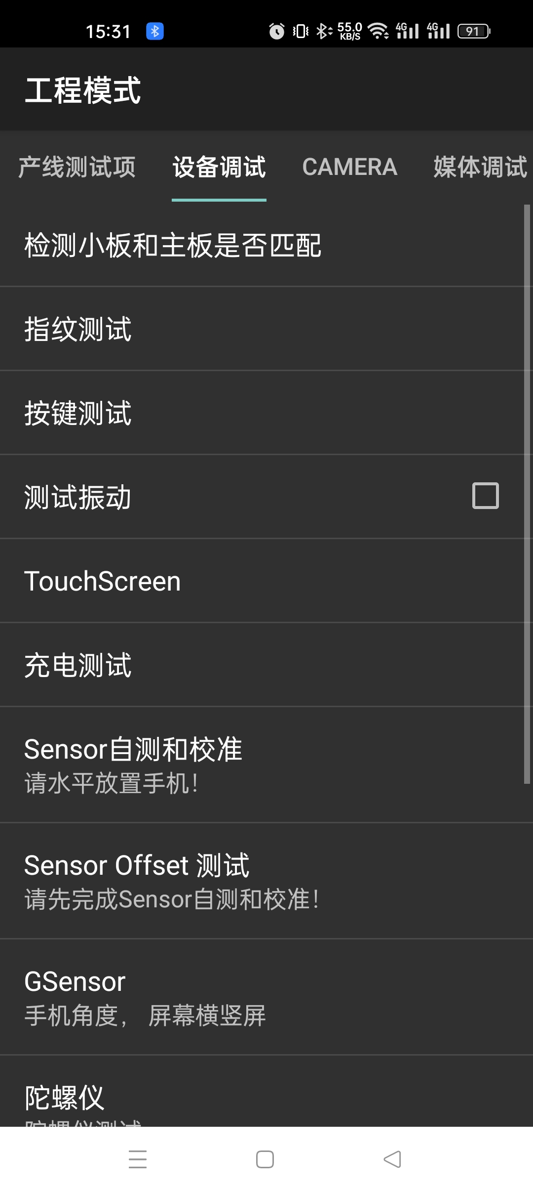然后选择手动测试,进入后选择上方的设备调试