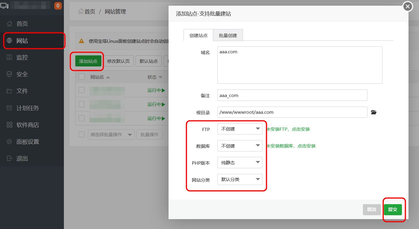 customDomains = ["你的域名"]serverPort和auth.token要和VPS内的配置一致,不然连不上。vhostHTTPSPort = 8700是指转发HTTPS流量到VPS的8700端口(PVE需要https登录),你的域名记得在宝塔面板左边的网站里添加站点绑定上,选纯静态就行。